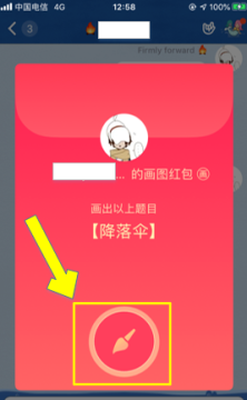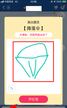 步骤4:当绘制的降落伞图像满足系统要求,如图所示,下端就会出现一个开红包的选项。