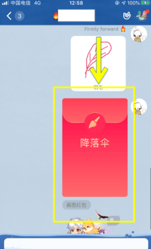 步骤1:首先进入QQ,在聊天界面找到关于降落伞的QQ画图红包并点击打开,具体如图所示。