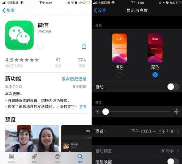 作者:网友整理 人气:0今天微信iOS版7.0.12版本更新了,而且大家期待已久的暗黑模式,也终于到来了。同时iOS微信7.0.12更新了其他新功能。而iOS微信7.0.12值得升级吗?一起来看看下文。