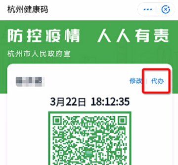 打开杭州市民卡APP,或者是支付宝。在首页点击或搜索找到“健康码”;打开本人申领的健康码,你会在健康码右上角看到“代办”按钮。