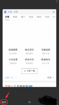 进入多窗口页面,就会将刚才的网页缩放为一个窗口,点击下方“返回”就可以退出多窗口。
