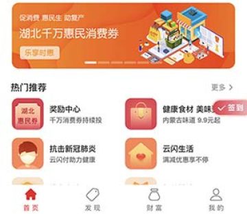 2、首页中间滚动区域,其中一个标着“湖北千万惠民消费券”,点击进入。