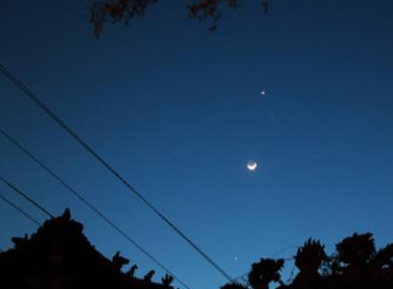 随着夜幕降临,一弯蛾眉月将闪亮登场,并在晚8时左右,停在金星和毕宿五之间,形成“双星抱月”的奇特天文现象。
