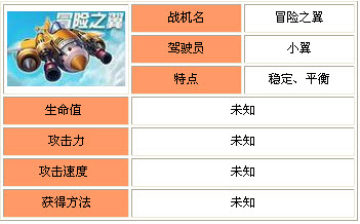 全民飞机大战冒险之翼图鉴 冒险之翼战机属性介绍