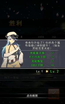 战斗结束之后,除了钱和经验以外还能随机翻出一张卡牌,品质视战斗强度和人品而定。而经验积攒到一定程度就可以升级,提高卡牌总数上限、疲劳值以及COST上限。