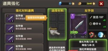1、观察道具强化界面,左边是强化所需的材料,右边是强化道具的对象