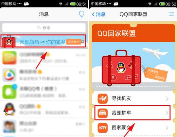 作者:qqtn冬冬 人气:02014春运已经拉开了序幕,在外一年的人都往家的方向赶,手机QQ推出了QQ回家联盟的活动,可以寻找机友、回家聚会、我要拼车的功能,下面是详细的使用教程介绍。