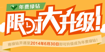 二、活动期间,将绿钻开通至2014年6月30日后,即可升级为年费绿钻,享受年费绿钻尊贵;