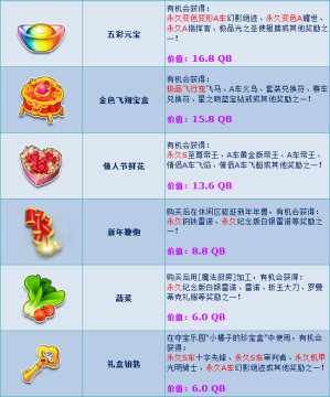 超值回馈礼包售价5.8Q币,打开礼包,不仅可获得“金色飞翔宝盒”、“新年鞭炮”、“五彩元宝”、“情人节鲜花”、“黄金元宝”、“蔬菜”、“礼盒钥匙”、“新年福袋”、“新年聚宝盆”等各式各样的精品道具,更有机会获得价值388Q币的王国大礼包噢!