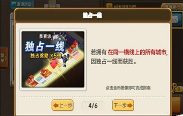 4、独占一线:若拥有在同意横线上的所有城市,因独占一线而获胜。