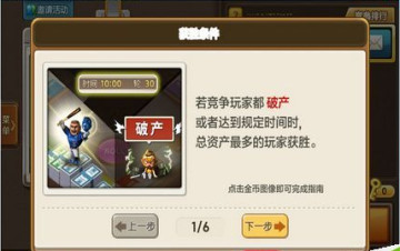 1、若竞争对手都破产,或者达到规定时间内,总资产最多的玩家获胜。