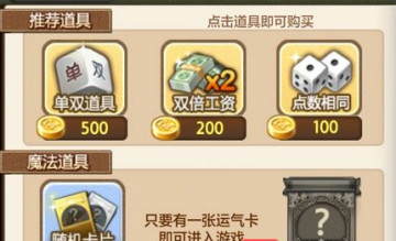 4、购买道具:进入游戏房间的时候有提供道具供玩家购买,道具可以让玩家有福利,比如说:涨工资、点数相同等等。