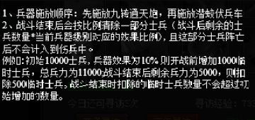 伏兵车效果:根据当前前带兵数量按比例增加一定数量的士兵,伏兵车在所有战斗中都生效。