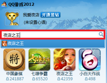 进入游戏大厅后,在红框处输入《夜店之王》,即可进入游戏!