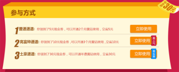 2、然后就可以在下方“立即使用”来折扣开黄钻了,其中的“高富帅通道”开3个月黄钻其实最合算了,相当于差不多可以享受到六折的优惠折扣哟!