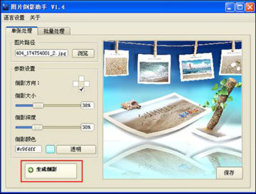 设置好以后,单击“生成倒影”按钮,这时用户可以在界面右侧的预览区当中预览到生成好的倒影效果图片。如图6所示。