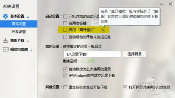 设置方面显然是极速版的长项,除了幸福树一类毫无意义的“糟粕”外(不知会不会遭到迅雷公关的封杀,嘿嘿~),绝大多数与下载有关的功能都被完整地继承下来。比如能够在电脑睡眠下继续下载的“离开模式”、最高支持50个的最大任务数、自动将低速任务移到队尾以及小于某一体积自动不排队的队列管理、能够在计算机低网络占用时自动启用的“空闲下载”,以及完善的BT/eMule/代理下载支持,总之多年的积累的确是其他厂商无法匹敌的,闲话不说,直接看图吧。