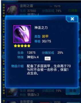 4星装甲神圣之力1等级的时候,生命力为4600,而等到60级的时候,则是25645