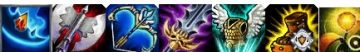 解析:用的比较混杂,红色可以换成攻击力,如果对方AP多的话蓝色可以换成魔抗。紫色吸血精华换成攻击力,这套也可以用当做ADC通用,大同小异罢了。