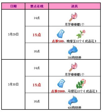 3月29日15点整点在线即可获得500点券。