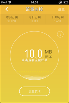 此时,通过软件首屏上的“蓝色水晶球”可以直观的向用户展示本月已经使用了多少流量,今天使用了多少流量,还有多少流量剩余等信息。水晶球的颜色还会随着流量多少自动变色来提醒用户注意。比如黄色代表流量快见底了,红色代表流量已超额,请及时关闭移动数据网络。