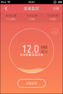 设置完成后,需要点击“流量校准”来进行手动校准操作,iOS版不支持自动校准服务,而为了保证百度手机卫士可以正常的监控流量的使用情况,请用户务必在“设置-通用-后台应用程序刷新”中打开“百度手机卫士”的开关,同时在iOS6/7中不要关闭后台进程。