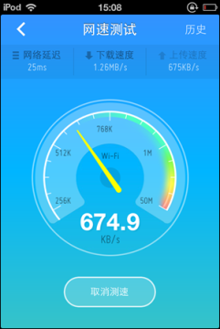 在网络测速时,百度手机卫士将以“汽车仪表盘”的形式,为用户展现测速过程中的各项动态数据,小编以公司无线网络为例,测试结果显示,数据也基本靠谱。