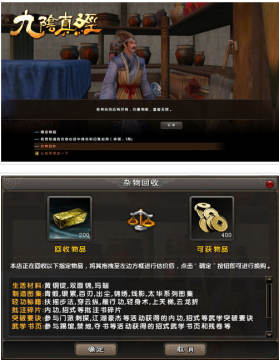 作者:qqtn冬冬 人气:0九阴真经在2014年4月初进行了版本更新,有大量新玩法公布,例如杂物回收,变废为宝,还有兵录升级,上限提升等,这里给大家分享下《九阴真经》杂物回收玩法的详细介绍。