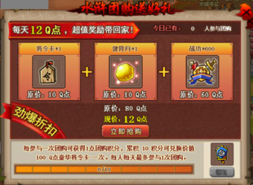 幸运战功礼包(内含:幸运符*4、战功*1000、大力丸*小*2),每日限购10个。