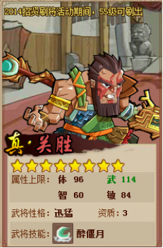 55级及以上用户在招贤馆使用高级武将刷新卡即可有几率刷出真·关胜(只能在自己的招贤馆内招募)。出征该武将需寨主等级60级以上。