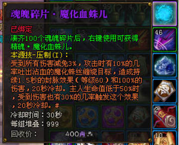 作者:qqtn冬冬 人气:0斗战神盘丝洞副本新增了魔化血蛛儿的新宠物,玩家们在挑战新的高级盘丝洞中可以获得魔化血蛛儿,下面是详细的用途介绍。