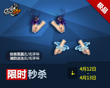 QQ飞车本周末极品限时秒杀活动火热开启,4月12日-4月13日,极品道具限时上架,各式极品(首发赛车、首发套装、极品宠物、极品手环)陪你过周末,部分极品最低仅需8折。
