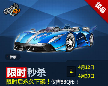 其中,首发极品车[萨摩]限时后将永久下架!各位飞车玩家们可别错过喔!