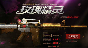 穿越火线首款精英永久M4玫瑰精灵,限时预售啦,现在购买只需388Q币原价为468Q币,现在购买更有好礼相送!