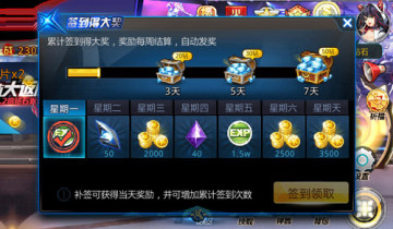 从公测当日起,每日首次登录游戏,即可完成当日签到,连续签到的天数越多,获得奖励越丰厚!