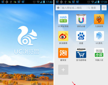 1、打开UC浏览器,点击中间的菜单键。