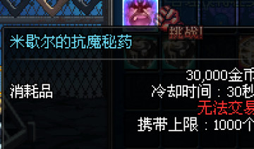 米歇尔的抗魔秘药属于消耗品,商城售价为30000金币。