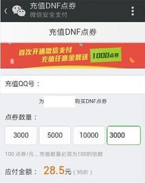 作者:qqtn小影 人气:0DNF携手微信开展了新的回馈活动,微信支付新用户,充值DNF任意金额赠送1000点券。小伙们你们还是微信新支付用户吗?
