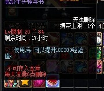 高级牛头怪兵书是限制等级的,只有20级到84的才可以使用,而且不是帐号绑定的。
