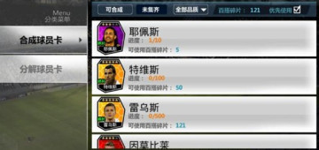 球员卡可以通过碎片来合成,碎片分为两种,分别是对应球员的碎片和百搭碎片。