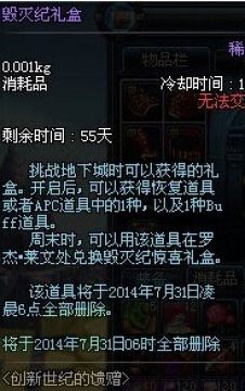 DNF毁灭纪礼盒是挑战地下城时可以获得的礼盒。