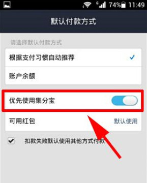 3、把【优先使用集分宝】选项打开,这样就OK了。