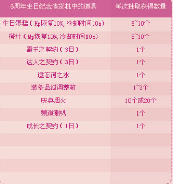 利用【6周年纪念硬币】可以在城镇各个角落的【6周生日年纪念售货机】处随机抽取各种道具。
