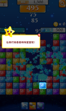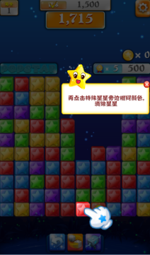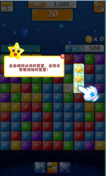 8、点击相邻冰冻的星星,会提示需要消除的星星!