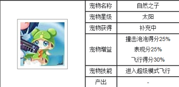 宠物增益:撞击泡泡得分25%,表现分25%,飞行得分30%