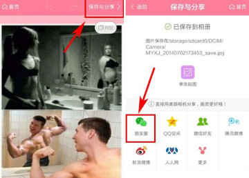 3、接下来点击右上方【保存与分享】,然后再选择屏幕左边的【朋友圈】点击进去。