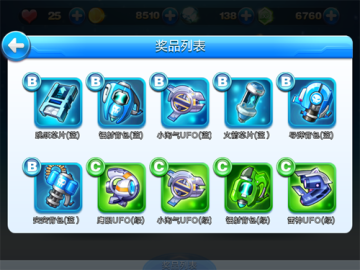天天酷跑炫飞模式中的寻宝奖励分为4个等级,分别是S级(橙色)、A级(紫色)、B级(蓝色)和C级(绿色),以下为寻宝的奖品列表,小编建议玩家在整点的时候寻宝,抽中S级装备的几率高一些。