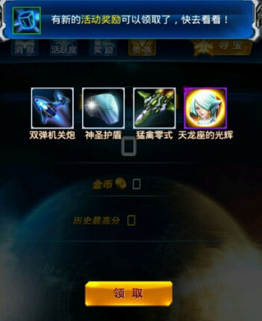 1、通过在无尽模式遭遇海盗船,大家可以将boss干掉然后就会有宝箱,亲们将宝箱打开有一定的几率可以获得天龙座光辉哦~!