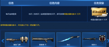 每月连续登录10天,15天明星武器兑换卡等你拿!