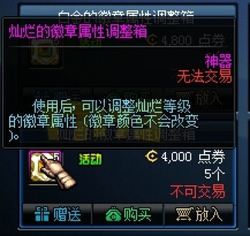 DNF灿烂的徽章属性调整箱怎么得?多少钱?
